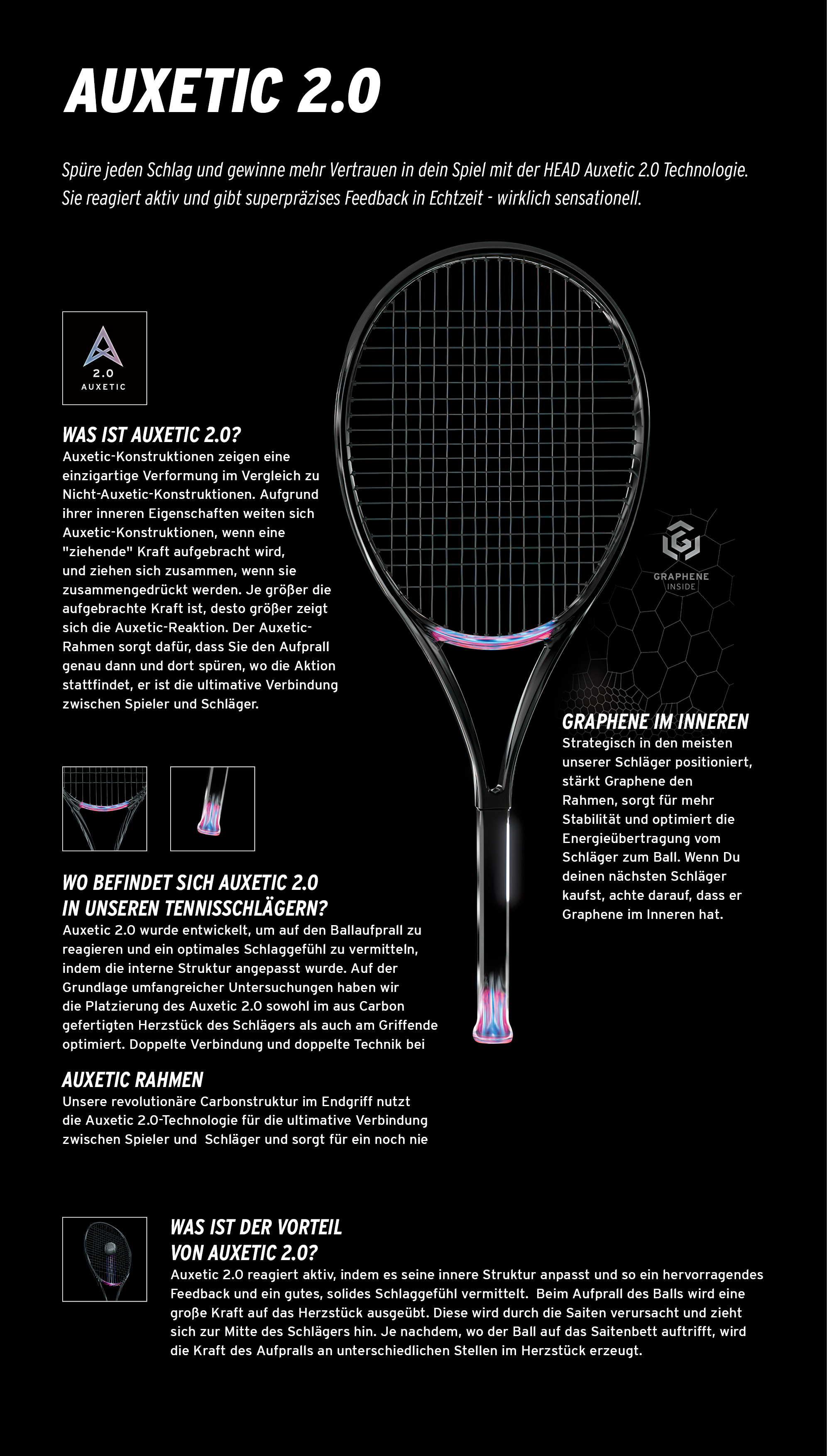 Die Tennisprodukte von HEAD sprechen jeden Spielertyp an, vom Turnierspieler bis zum Freizeitspieler. Auch viele Tennisprofis vertrauen auf die Marke HEAD und sind auf der ATP Tour mit der innovativen Tennisausrüstung von HEAD zu sehen, unter anderem Novak Djokovic, Alexander Zverev, Jannik Sinner, Diego Schwartzman, Andrey Rublev, Jan-Lennard Struff, Lorenzo Musetti und Marin Cilic. Spitzenspielerinnen wie Coco Gauff, Bianca Andreescu oder Sloane Stephens präsentieren sich auf der WTA Tour ebenfalls mit einem Racket und der stylishen Tennisbekleidung von HEAD.