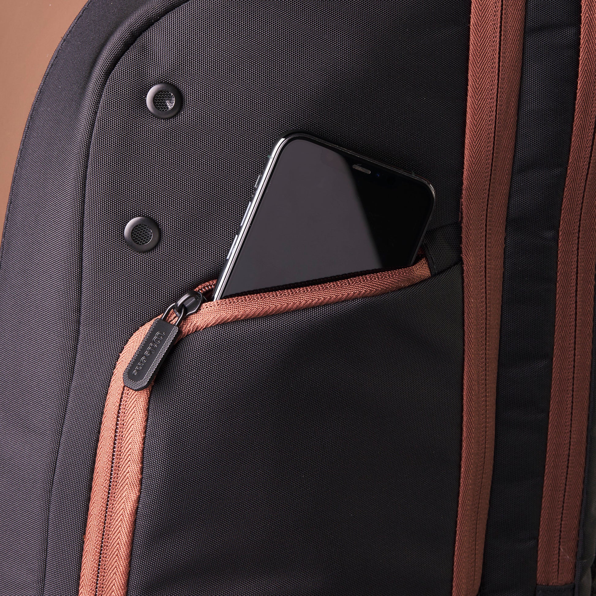 - Seitliche Reißverschlusstasche mit Thermoguard-Auskleidung, die Wasser oder Snacks kühl hält